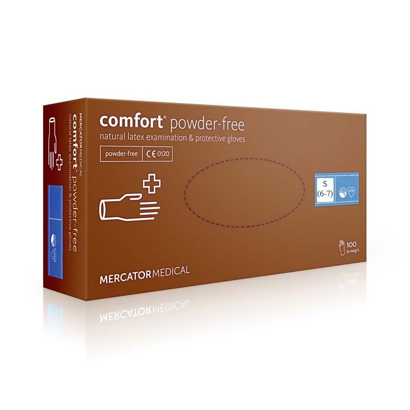 Tillfälligt slut! Puderfria engångshandskar av latex. Överlägsen komfort. Storlek S. 100 st/fpk